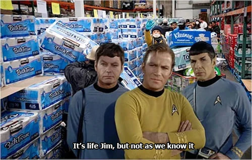 Captain Kirk watches Covid panic buyers stockpiling toilet rolls